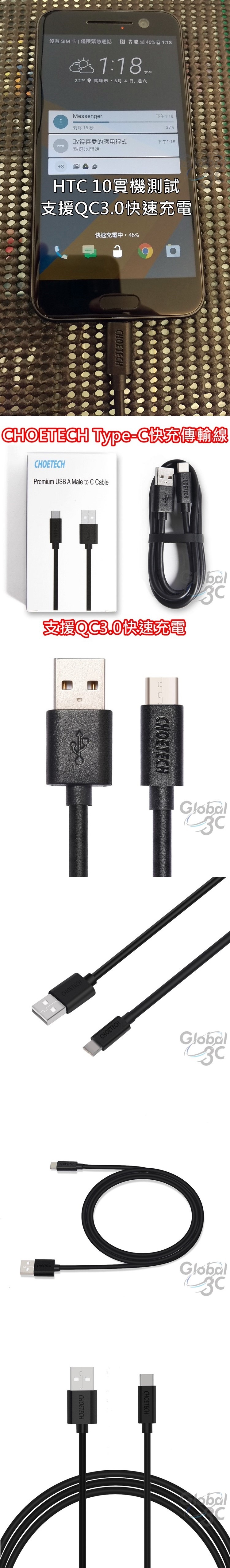 CHOETECH 支援快充 2米 Type-C 3.1 充電傳輸線 安卓 HTC M10 10 快充線 9V快充 USB