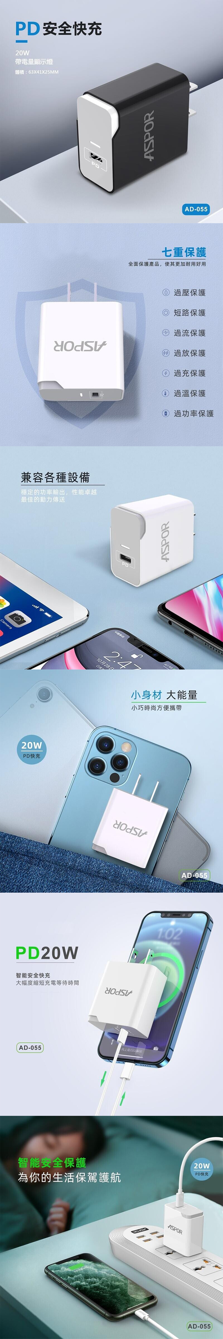 ASPOR 20W PD快充頭 單孔快速閃充電器 穩定輸出 iPhone系列 Type-C