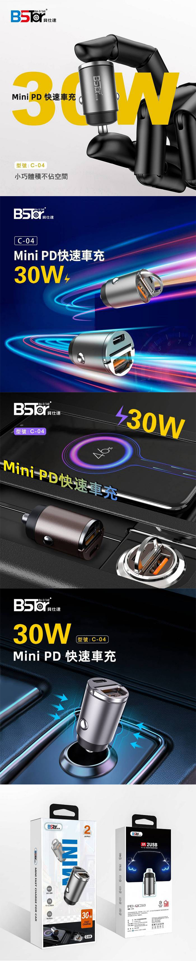 BSTar貝仕達 MINI 30W PD+QC3.0 超級快速車充 30W車充 金屬車充 雙孔 TypeC USB