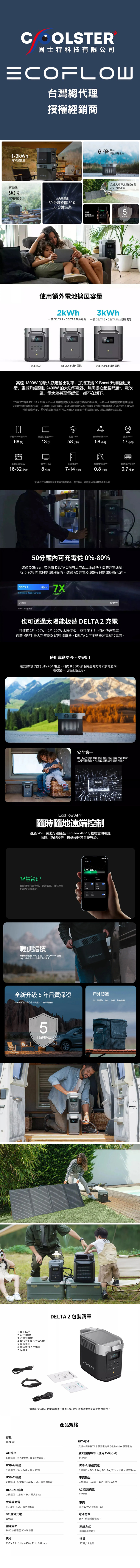 • 電池容量1024Wh,搭配 DELTA 2 額外電池以達到 2048Wh