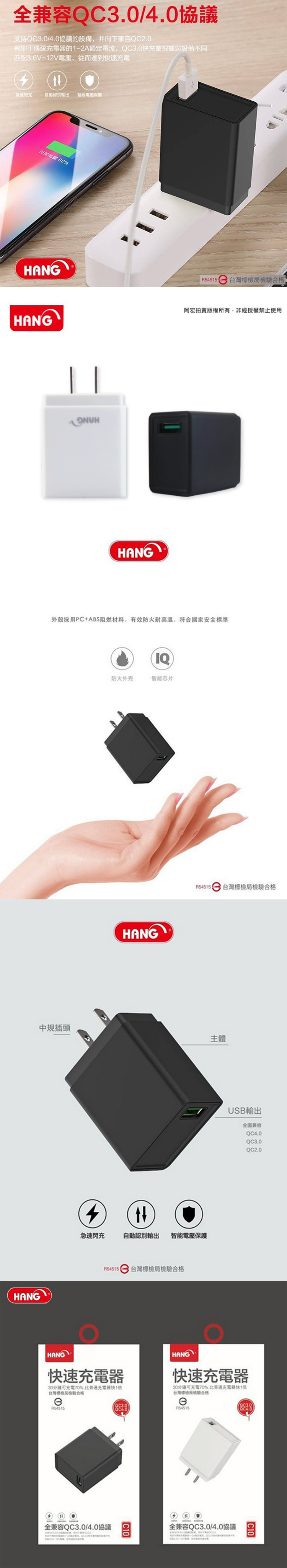 HANG C10 單孔快速充電USB頭 QC3.0/4.0 快充 充電頭 快速充電 單孔充電器 充電器