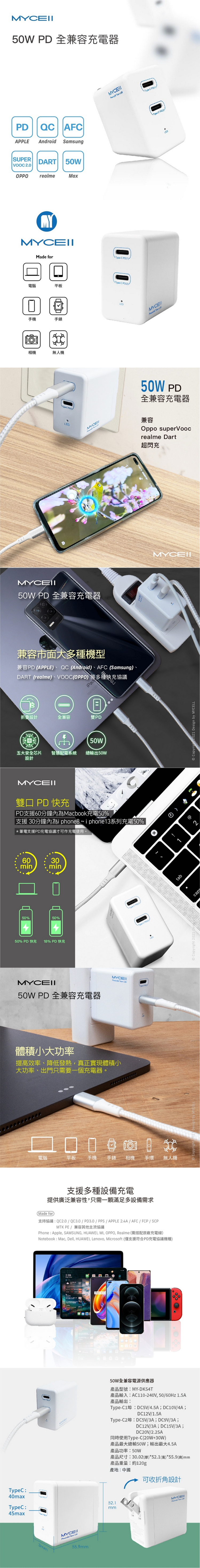 MYCELL 50W充電頭 雙Type-C孔 iPad MacBook 充電器 雙孔可同時充平板 手機 筆電