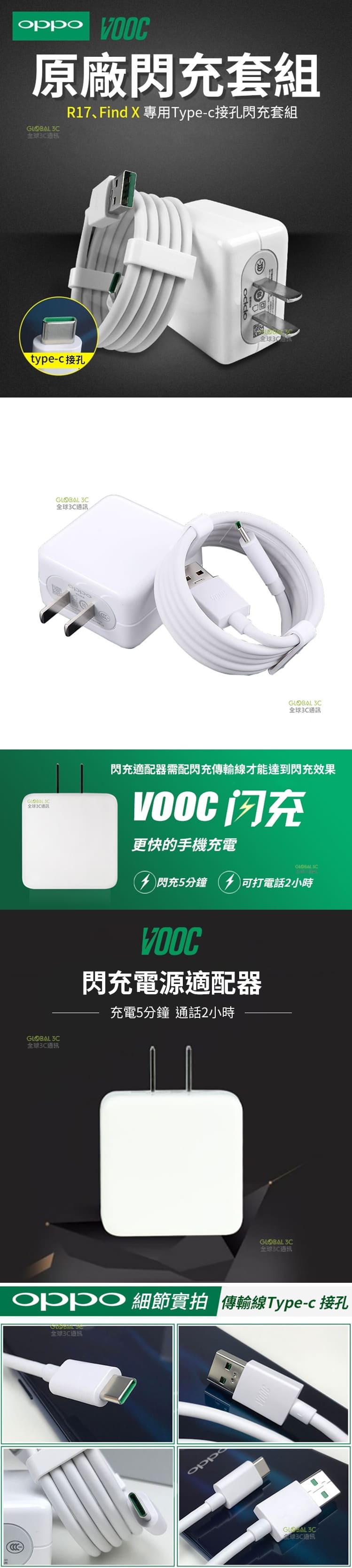 OPPO VC54JBCH 五代閃充+Type-c閃充線 套裝組合 R17 Pro Find X VOOC 充電器+線