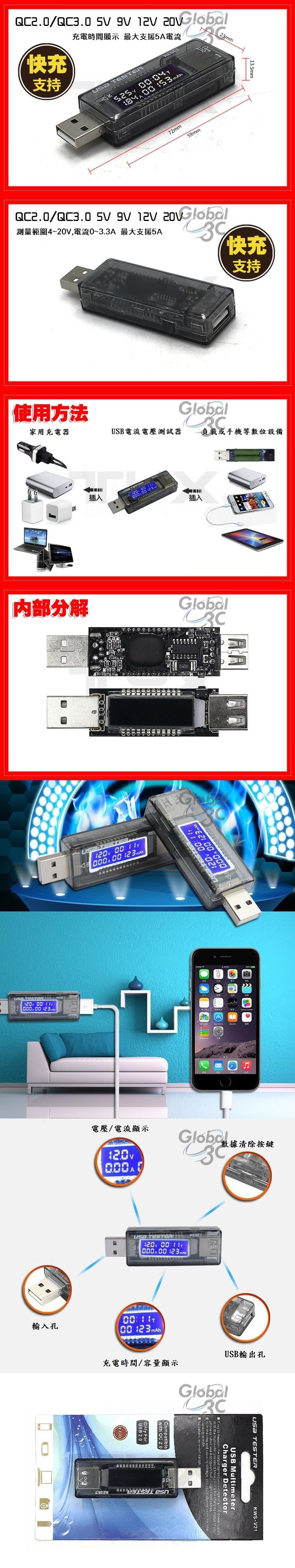 支援 QC 2.0 3.0 快充 充電時間顯示 電壓 USB電壓電流測試儀 5V/9V/12V 測電壓電流神器